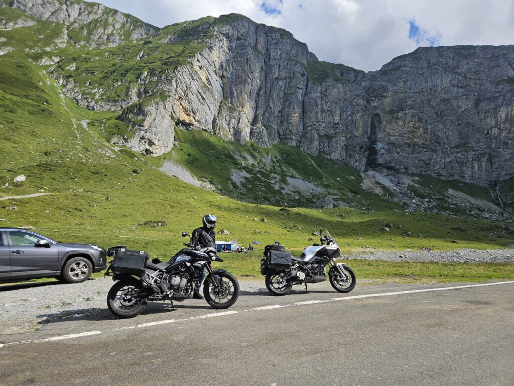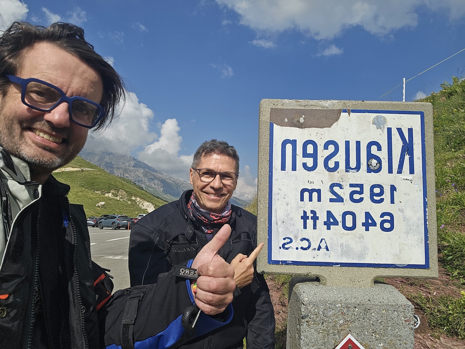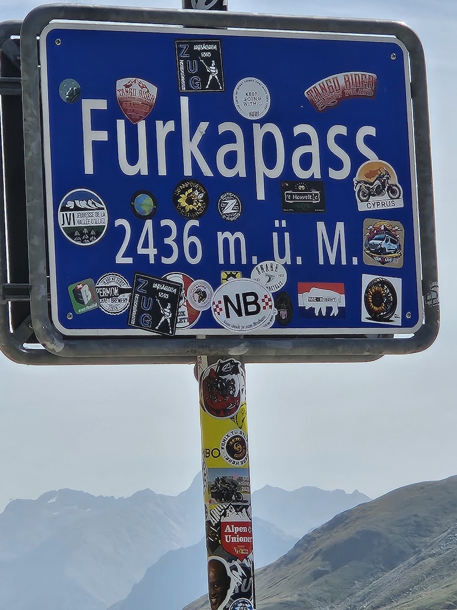 Der Tag begann mit einem Abstecher zum Rheinfall bei Schaffhausen. Von dort ging es – zeitweise zu zweit – durchs Schweizer Unterland ans Ostufer des Zürichsees, am Walensee vorbei nach Glarus, wo Laden und spätes Mittagessen gut zusammenpassten. Danach wurde es alpin: hinauf zum Klausenpass, weiter in Richtung Vierwaldstättersee (ohne ihn wirklich zu sehen) nach Andermatt und anschließend über den Oberalppass nach Sedrun in die Mountain Lodge.