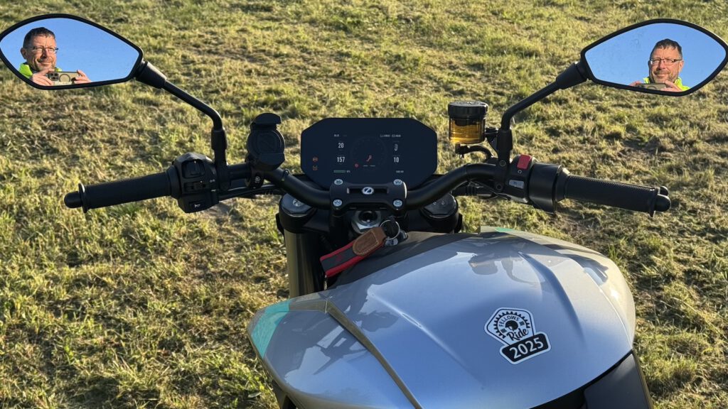 Das TFT-Cockpit ist gut ablesbar und erlaubt, die Informationsfelder nach Bedarf zu belegen – etwa mit Reichweite, Trip, Temperaturen oder Verbrauchswerten. Dazu kommt die App-Anbindung für Fahrzeugstatus, Standort, Ladevorgang und Updates. Over-the-Air-Updates sind dabei ein zweischneidiges Thema: Sie sind grundsätzlich praktisch, funktionieren aber je nach Situation nicht immer völlig reibungslos – bleiben dennoch ein wichtiger Baustein, weil das Motorrad stark softwaregetrieben ist.