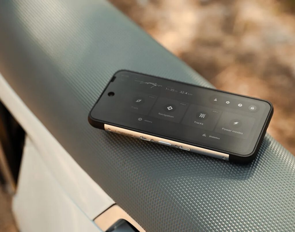 Der permanentmagneterregte E-Motor (CF-Sleeve) mit integriertem Inverter liefert die bekannte, unmittelbar dosierbare Varg-Charakteristik. Über das mitgelieferte Arkenstone-Smartphone und App lassen sich Leistungs- und Motorbremskurven in allen Fahrmodi frei konfigurieren – vom sanften Commuter bis zum Track-Setup. Crawl-Mode mit Rückwärtsgang, digitale Sicherungen und auf Wunsch Lenker-Handbremse runden das SM-Paket ab. Es gibt ein Konnektivitäts-Abo, mit dem das Arkenstone auch Turn-by-Turn-Navigation, Routenaufzeichnung, erweiterte Leistungmodi und auch einen Rennmodus einstellbar sind.
