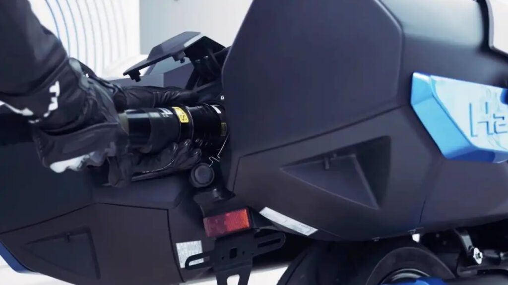Zum Vergleich hilft ein Blick auf Autos: Der Toyota Mirai packt rund 5,6 kg Wasserstoff in zwei 700-bar-Tanks mit zusammen etwa 122 Litern Innenvolumen. Der Hyundai Nexo kommt mit drei Tanks auf ~156 Liter für 6,3 kg. Diese Volumina passen im Pkw – im Motorrad gibt es solche Verstecke nicht.