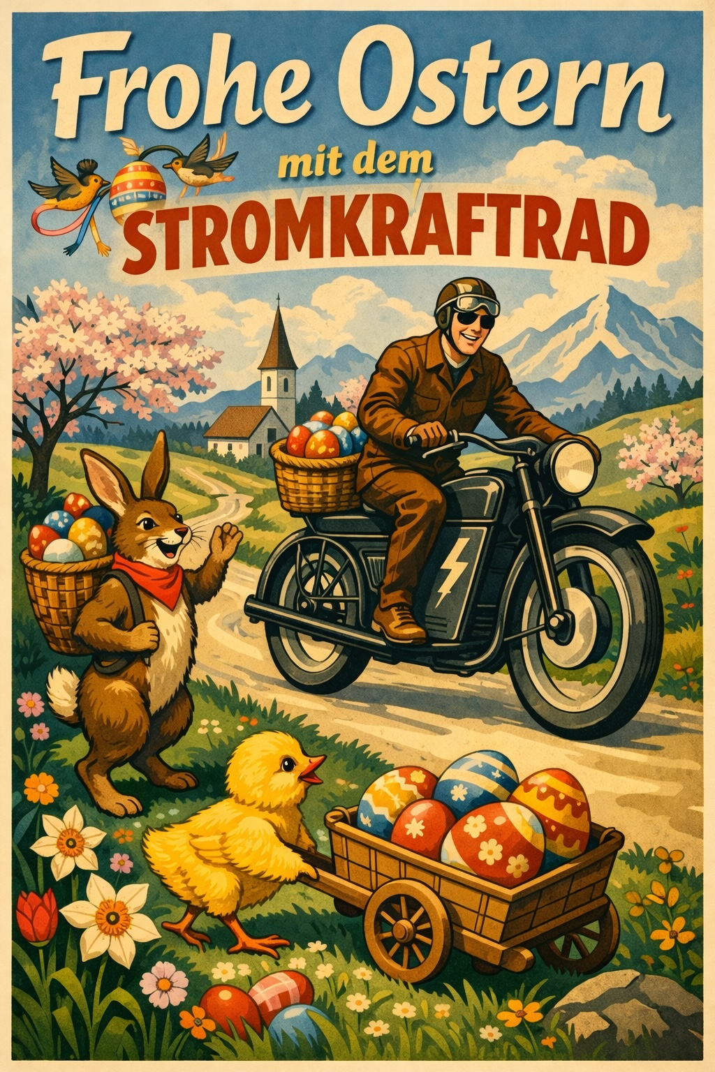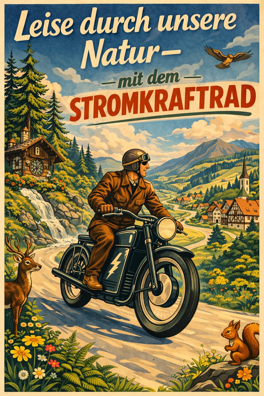 Elektromotorräder sind modern – und verursachen offensichtlich bei manchen Menschen, die Veränderungen eher zögerlich gegenüber stehen, Ängste. Um diese Ängste etwas abzubauen, haben wir uns entschlossen, eine Kampagne in der Ästhetik der 1920er und 1930er Jahre zu starten, in der die Vorteile von Elektromotorrädern mit einfachen Worten und mitunter auch emotional hervorgehoben werden. Zu dieser Ästhetik gehört natürlich auch die komplette Eindeutschung des Names selbst. Und so ist der Begriff des Stromkraftrads entstanden.